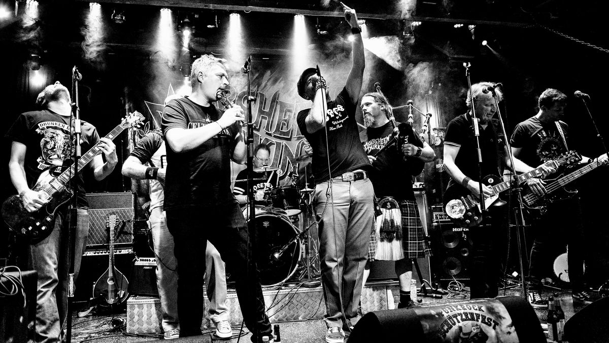 MUIRSHEEN DURKIN – der Cocktail für eine irisch-celtische Punk-Rock-Explosion: 10 Flaschen Whiskey, 2 Six-Packs Murphys und einen Karton Guinness großzügig über 9 leicht durchgeknallte Typen gießen. Mit Tin-Whistle, Pipes, Banjo, Mandoline, Mandola und Akkordeon verfeinern und auf brutzelnder Bühne servieren! Was dabei rauskommt? Eine schweißgetränkte Party, die jede Lautsprechermembran an ihre Grenzen bringt und jeden Tanzboden zum Beben zwingt! Vergiss beschauliches Shanty-Gedudel – hier wird traditionelles Liedgut mit Vollgas durch den Punk-Mixer gejagt!
